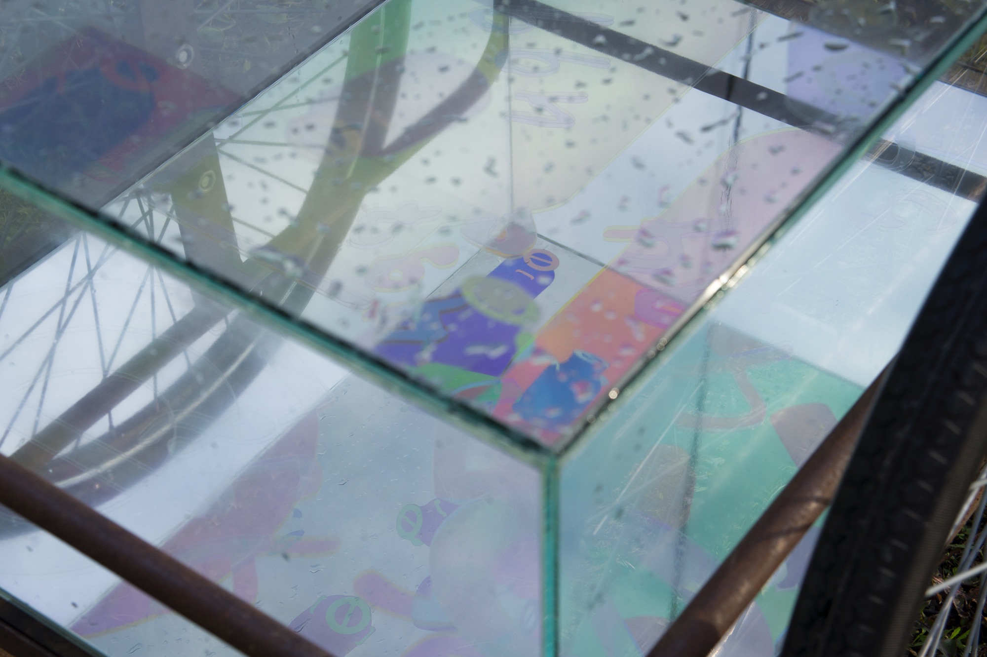 Kyläkulman entisen maitolaiturin paikalla seisovassa vanhassa maitokärryssä oleva lasikuutio paljastaa visuaalisen sisältönsä vasta läheltä katsottuna: kärryn pohjalla oleva peili siivilöi valon lasikuution kannen polarisaattorin läpi, jolloin leikkauspinnan alueelle aukeaa tonkka-avaruus kylän nykyisäntien omakätisesti kirjoitettujen tonkkanumeroiden kera.